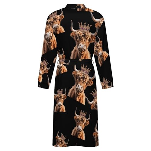 HOT ! Highland Cow of King Soft Robe Long Sleeve Bathrobes V Neck Sleepwear Spa Robes with Belt Men Woman