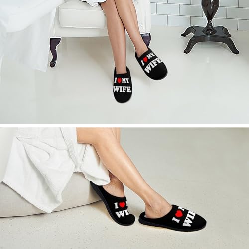 HOT ! I Love My Wife Women's Cotton Slippers Indoor Outdoor Slip-on Warm House Shoes with Anti-Skid Rubber Sole