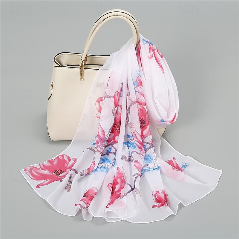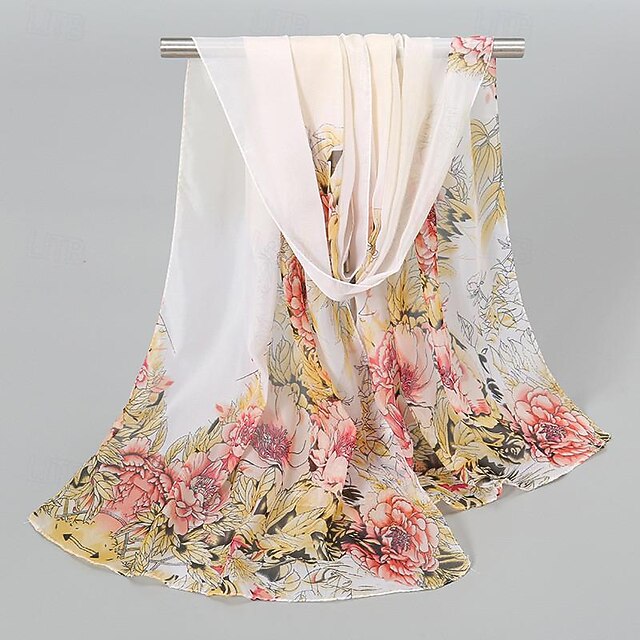 Highlights [Fabric] : Crafted from high-quality polyester, this women's scarf offers a lightweight and airy texture, perfect for spring and summer wear. The fabric's semi-sheer nature enhances its soft and comfortable feel, making it a versatile addition to your wardrobe. [Pattern and Style] : Designed in a modern and sophisticated rectangle shape, the scarf features a vibrant floral print with delicate pink and yellow hues accented by green leaves. Its elegant look can effortlessly complement both casual and formal outfits. [Design Highlights] : The scarf boasts a flowing design and versatile length, allowing you to style it in multiple ways. Its modern floral pattern adds a touch of elegance and femininity to any ensemble, ensuring you stand out on any occasion. [Occasions] : Ideal for dates, street wear, daily outings, weekends, and more, this scarf enhances your style for various events. Whether you're dressing up for a special occasion or adding flair to everyday attire, it serves as the perfect accessory. [Size Notice] : Offered in a generous one-size-fits-all dimension, it is designed to accommodate a wide range of body types, ensuring a comfortable and stylish fit for everyone.