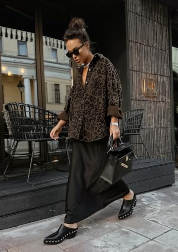 • 【STYLISH DESIGN】The womens 2025 trendy leopard printed oversized shacket features lapel collar, button closure, long sleeves, relaxed fit, fashion cheetah style make this womens shirt top chic and flattering. This streetwear retro leopard jacket is perfect for the woman who wants to keep warm and charming all the time. Your Best Choice!