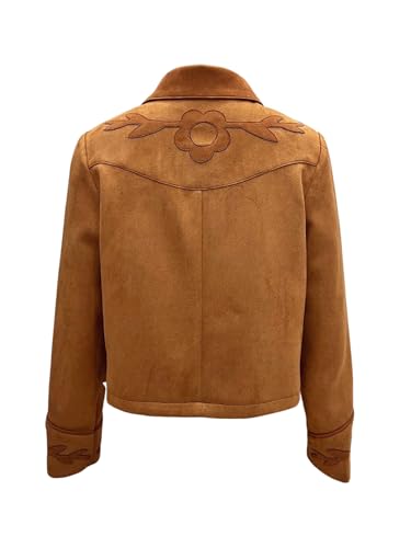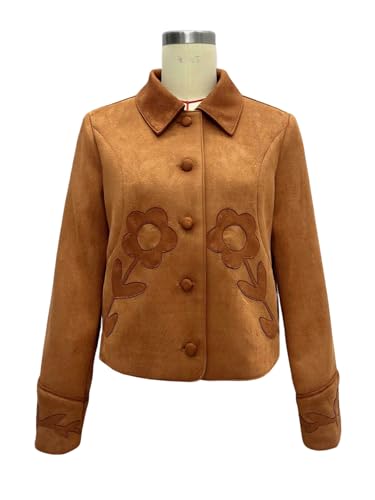utcoco Women Fashion Floral Patchwork Cropped Faux Suede Leather Jacket 2025 Fall Clothes Button Down Lightweight Coat 5