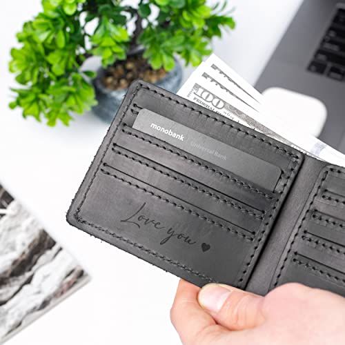 HOT ! Personalized Leather Wallet Groomsmen Gifts Ideas Leather Wallets for Him Custom Mens Wallet Gifts for Dad, Husband, Brother, Grandpa for Father's Day, Christmas, Birthday, Anniversary