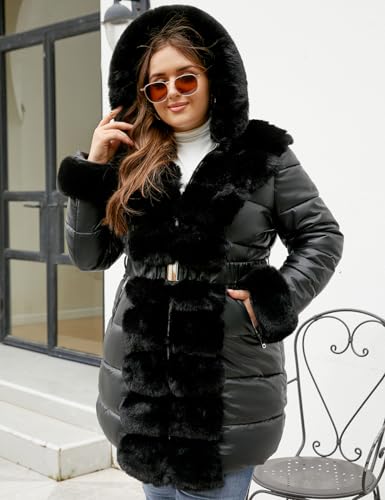 Geschallino Women's Puffer Coat Plus Size Winter Jacket Warm Hooded Thicken Padded Bubble Outerwear (1X-5X) 4