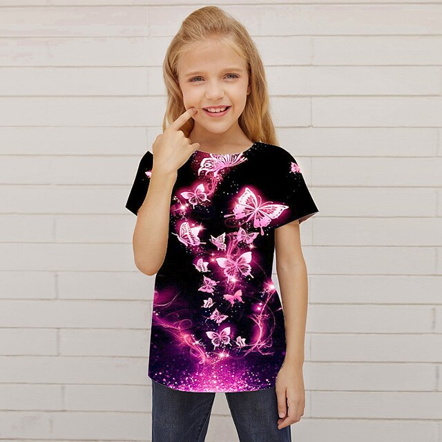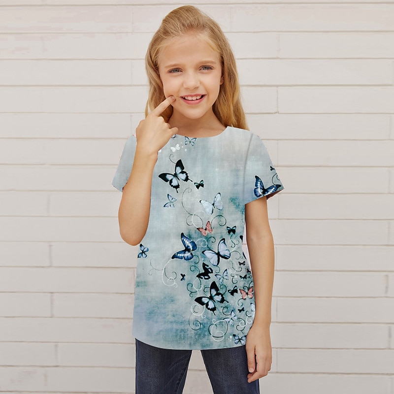 More information about Girls' 3D Animal Butterfly T shirt Short Sleeve 3D Print Summer Spring Active Fashion Cute Kids 3-12 Years Outdoor Daily Indoor Regular Fit