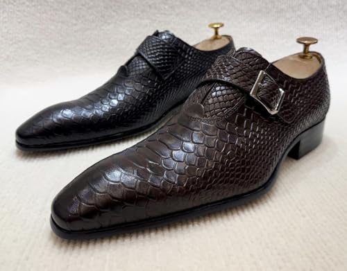 Santimon Men's Genuine Leather Loafers Formal Dress Shoes - Snake-Embossed Monk Strap Loafers with Adjustable Buckle 7