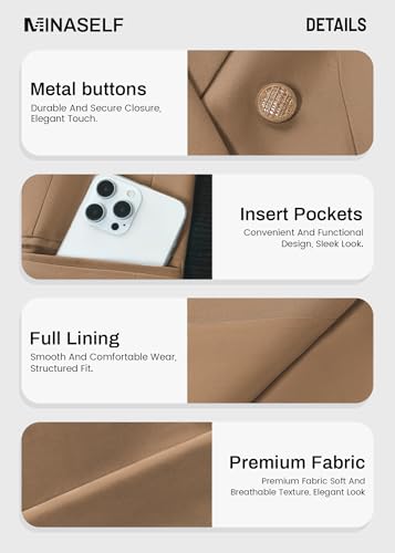 • 【Premium Fabric & Fit】 Crafted from high-quality polyester, this blazers for women business casual style is lightweight, breathable, wrinkle-resistant, and tailored in a double breasted blazer women fit for daily comfort.