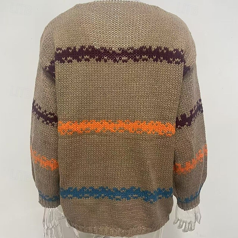 More information about Women's Sweater Pullover Streetwear Casual Striped V Neck Stripe Knitted Long Sleeve Regular Tops Knit Daily Holiday Going out Khaki Fall Winter