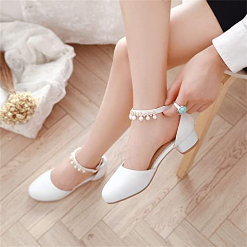 High Heel Closed Pointed Toe Sandals for Girls Kids Ankle Strap Beaded Pearl Formal Shoes Fancy Wedding Basic 6