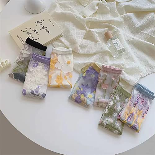 Vintage Sheer Socks,Summer Transparent Flower Ankle, Thin Mesh Lace Elastic Jacquard Glass Silk 5