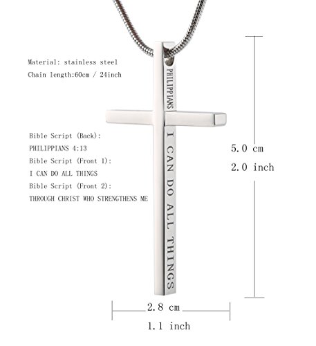 More information about HZMAN Philippians 4:13 Cross Pendant STRENGTH Bible Verse Stainless Steel Necklace