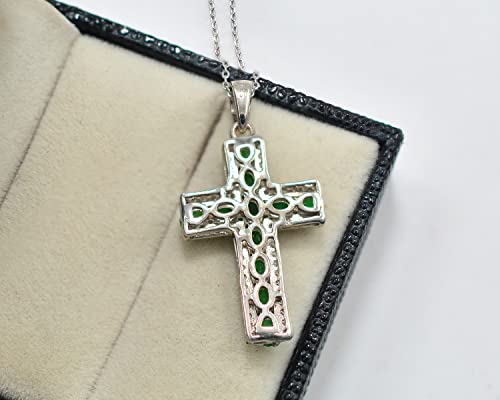 More information about Natural 4X3 MM Oval Cut Zambian Emerald Gemstone 925 Sterling Silver Unisex Holy Cross Pendant Necklace Emerald Jewelry Christmas Gifts For Wife (PD-8278)