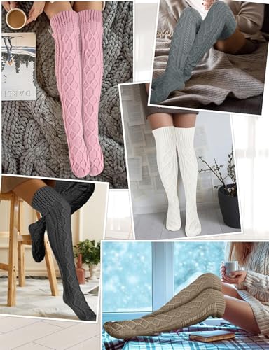 Buauty Women's Thigh High Socks Cable Knitted Knee High Socks Over The Knee Leg Warmers Extra Long Winter Stockings Fashion 4