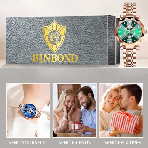 • 💕BINBOND Brand Women's Wrist Watches Gift: Offered in beautiful gift box packaging, it is the perfect gift for your girlfriend, wife or mom. If you have any questions about watch, please feel free to contact us and we will be happy to serve you.