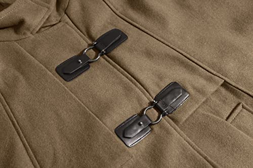 • Features: two buckle button closure, shoulder straps, 2 hand pockets curvy hemline, snug wool blend cloak with hood women, Gothic cape for women; brown camel winter poncho coat for women
