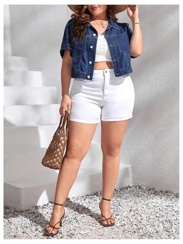 Verdusa Women's Plus Size Button Front Denim Jacket Summer Streetwear Crop Tops with Pockets 5
