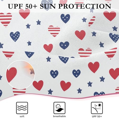 July 4th Independence Day Heart Girls Long Sleeve Rashguard Swimsuit UV Protection One-Piece Swimwear B0404590