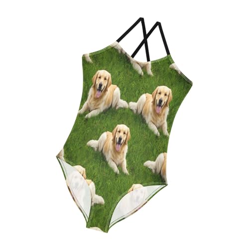 Dogs Lying Green Grass Girls' Athletic Swimwear, Summer Beach Bathing Suit, 3-10