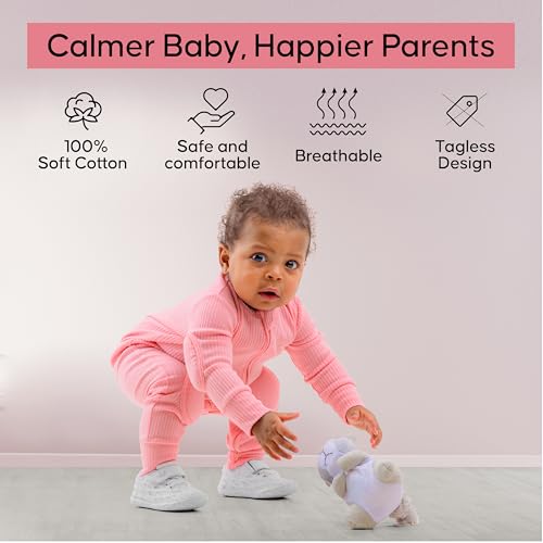 Premium Baby Romper Onesie - 100% Cotton, Double Zipper, Knee & Elbow Pads Extra Saftey with Peace of Mind