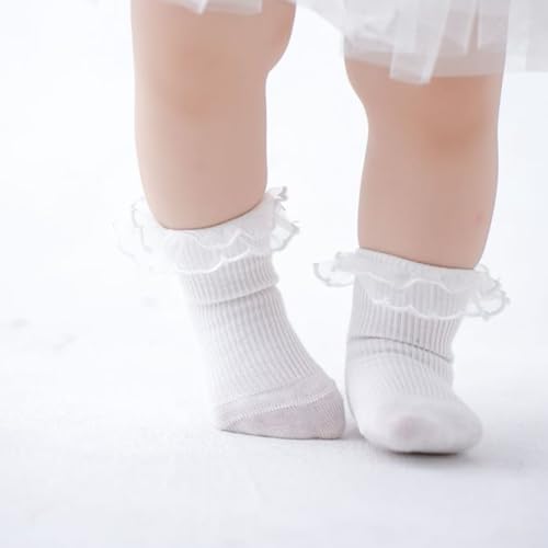 Meeshine Baby Newborn Girls' Lace Ruffle Ankle Socks Toddler Frilly Cotton Princess Dress Socks 5/6-Pack