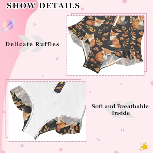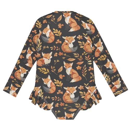 ALAZA Fox Flower Leaf Watercolor Girls One Piece Swimsuit Long Sleeve Rash Guard Swimsuits UV 50+ Swimwear Zipper