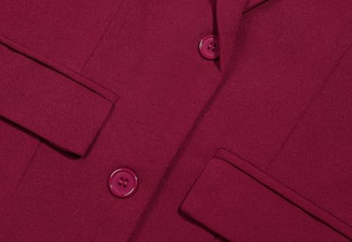 Womens Blazer Notched Lapel Button Front Suit Jackets Long Sleeve Lightweight Pocketed Blazer for Bussiness Casual (Wine Red L)