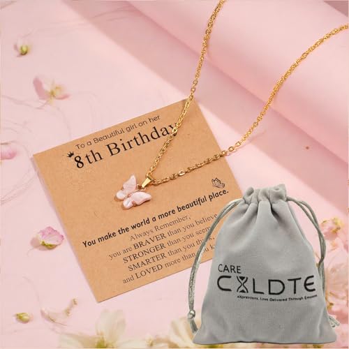 Material: Stainless SteelMetal type: Stainless SteelGem type: No GemstoneItem type name: Pendant Necklaces【8 Year Old Girl Birthday Gift - Meaningful Keepsake】 This Happy Birthday Butterfly Necklace is the perfect birthday gifts for 8 year old girl, symbolizing change and hope. A heartfelt gift for 8 year old girl that tells her You make the world more attractive during this special growth stage.【Gifts for 8 Year Old Girls - Safe & Durable】 Crafted from hypoallergenic stainless steel with gold plating, this 8 year old girl gifts necklace features an adjustable 18+2 chain, ideal for gifts for 8 + year old girls. Sparkling pink crystals add birthday magic.【8th Birthday Gifts for Girl - Perfect Present】 More than just 8th birthday decorations for girls, this timeless jewelry makes ideal gifts for 8 year old girls - whether for daughters, granddaughters, or BFFs celebrating this milestone age.【Inspirational 8 Year Old Girl Birthday Gift】 Hidden message inside the pendant boosts confidence: You are braver than you believe... A motivational alternative to typical 8 year old girl gifts like toys or shirts.【Birthday Gifts for 8 Year Old Girl - Lasting Treasure】 Unlike temporary 8th birthday decorations, this necklace grows with her. The ultimate 8 year old girl birthday gift that becomes a cherished keepsake for years to come. Perfect for everyday use. excellent materials and excellent craftsmanship ensure long-lasting durability.