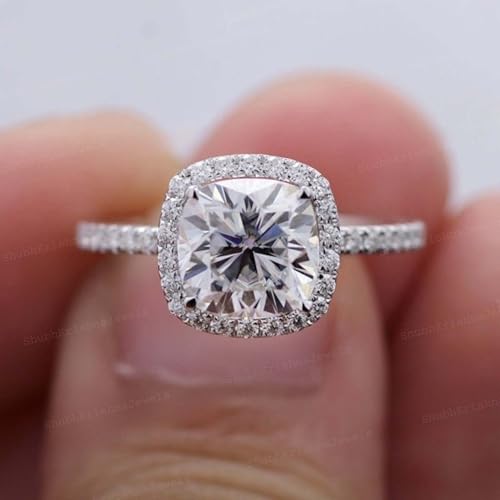 Ring size: AllMaterial: Gemstone, MetalMetal type: White gold plated silverGem type: MoissanitePRODUCT DETAILS :- Main Stone: Moissanite (Lab Created) Stone Color: Colorless Stone Shape: Cushion Stone Size: 6MMFeatures a dazzling 4 carat cushion cut colorless moissanite center stoneSurrounded by a sparkling halo setting to enhance brilliance and sizeExceptional fire and clarity β a brilliant alternative to diamondsVintage-inspired yet current design for timeless appealVintage-inspired yet modern design for timeless appeal