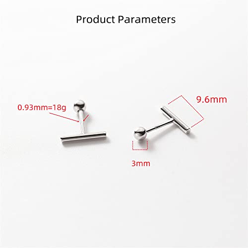 18G Bar Earrings 925 Sterling Silver Tiny Stud Cartilage Earring for Women Girls Minimalist Small Short Bars 3mm Balls Tragus Post Barbell Screw Back Hypoallergenic Piercing Ear Jewelry