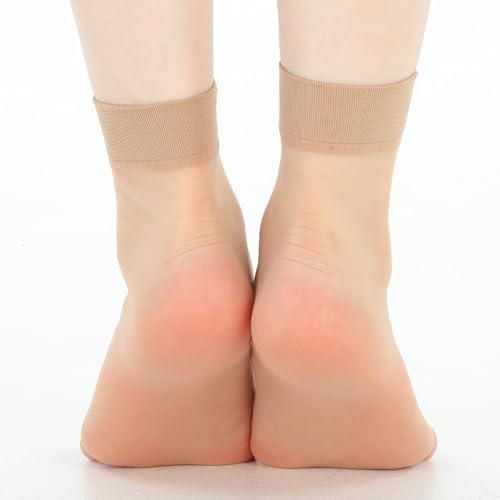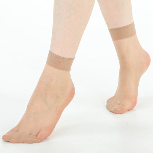 9 Pairs Women's Ankle High Sheer Socks Thin Nylon Sock Short Dress Stockings See Through Sock Nylon Reinfored Toe Pantyhose Socks for Women Nude