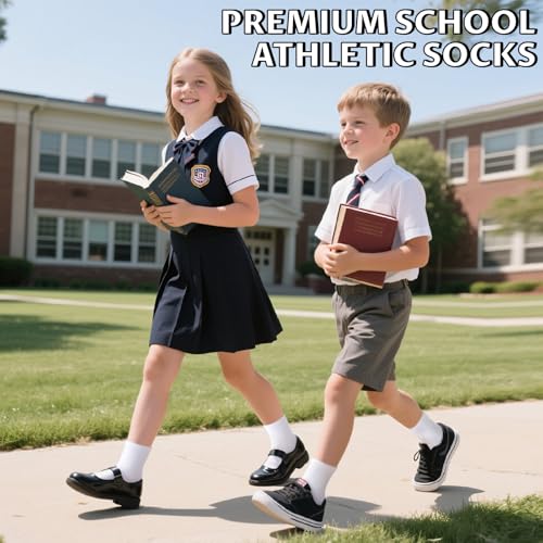 • School socks for girls boys: Our kids crew socks offer a selection of solid and striped styles to match different types of clothing.Ideal uniform socks for girls boys daily wear, and other special occasions, kids white socks is a must-have item for students on campus and an magnificent school gift