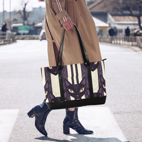 Tribal Style Black Cats Large Capacity women laptop tote bag with zipper briefcases for mom with lunch