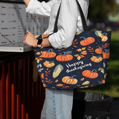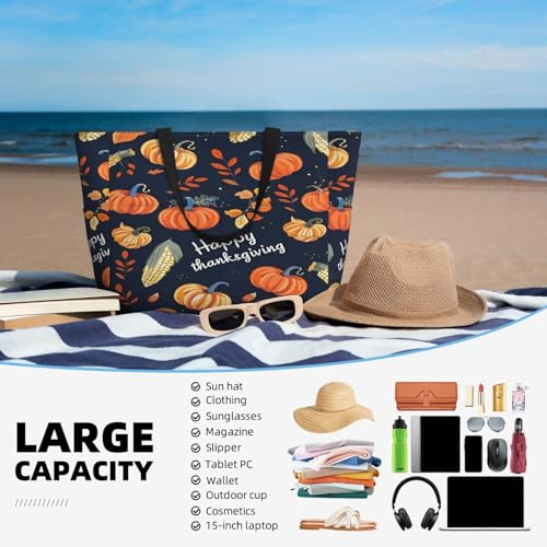 Thanksgiving Pumpkin Beach Bags For Women, Large Waterproof Tote Bag Sandproof Pool Bag Handbag For Travel Work Gym