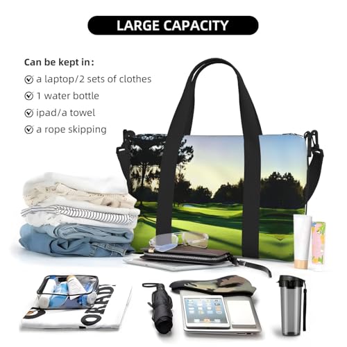 • Multiple pockets: Golf Course print Sports Gym bag has 1 main pocket, double-slider zipper closure, 2 patch pockets and 1 zipper pocket inside. Large capacity travel totes bag , internal and external organizational pockets ensure you have a place for everything, fit 15.6 inch laptop computer.