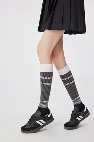 4/8 Pairs Retro Style Striped Knee High Socks for Women Academic Combed Cotton Stockings for Daily Wear and Sports
