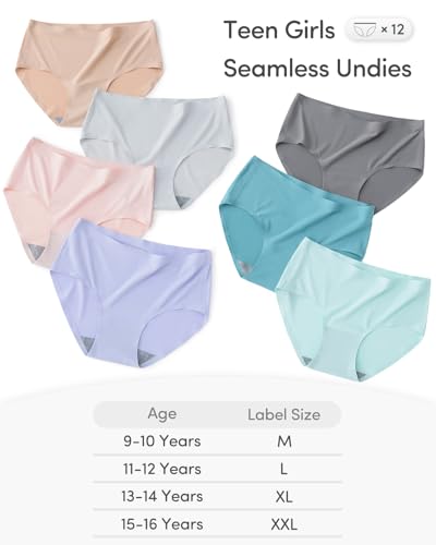 Fabric type: 93% Nylon, 7% SpandexCare instructions: Machine WashOrigin: ImportedBreezy Ice Silk Fabric: Crafted from premium ice silk fabric for a silky-smooth touch. This lightweight, breathable material keeps you cool and comfy throughout school, sports, and daily adventures.Seamless Design: Say goodbye to embarrassing panty lines! Our smooth, one-piece cut panties ensure a completely invisible look beneath leggings and fitted outfits — total confidence guaranteed!Skin-Friendly Comfort: Cloud-like softness, tag-free design, and a breathable 100% cotton gusset ensure irritation-free wear and all-day freshness.Full Coverage & Stretchy Fit: Thoughtfully designed mid-rise waist offers just-right coverage and stays securely in place without rolling or bunching. remarkable elasticity provides a snug yet flexible fit, effortlessly adapting to teens' active lifestyles.Incredible Value 12-Pack: Includes 12 panties in a delightful assortment of everyday colors. Always a clean, fresh pair handy — making laundry days simpler and mornings easier.