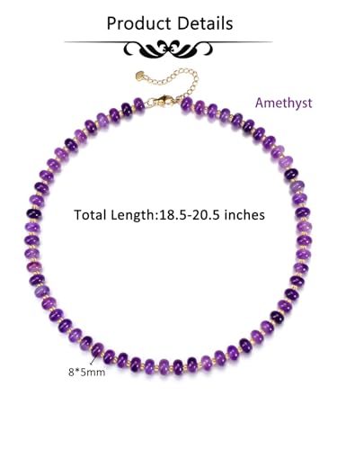 • [Beaded Necklace Specifications]: womens necklace is made with natural stone bead, the crystal bead necklace is light weight, solid and long lasting, easy to wear. Amethyst purple beaded necklace is 18.5”+2” length, perfect for wearing as a choker necklace or layering with other necklaces for a sleek look