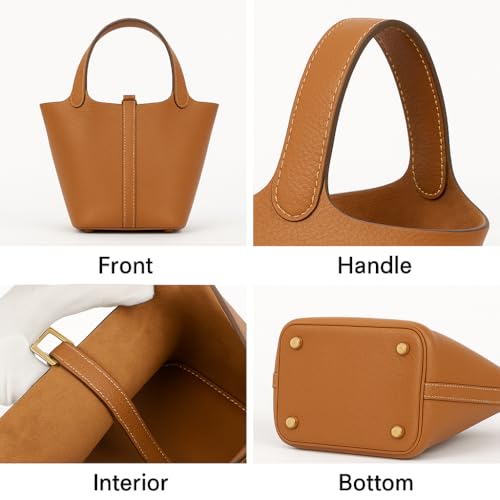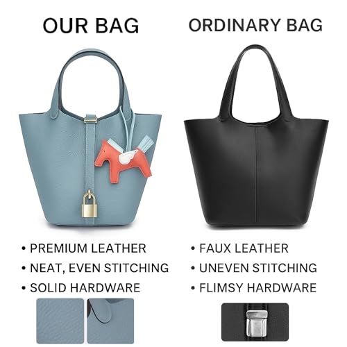 Fabric type: Genuine LeatherOrigin: Imported【Premium Full-Grain Leather】Crafted with scratch-resistant cowhide leather, develops special patina over time. This high-quality genuine cow leather bag is 30% softer than standard leather with reinforced stitching for 5X durability. Spacious interior with ample room for daily essentials【Upgraded Large Capacity】Approximately 8.7 (L) × 8.3 (W) × 7.1 (H);Unlike similar styles, our version features a larger size for extra storage, perfect for daily errands, beach days. Same Chic Look, More Room – Keep the iconic style you love, now with enhanced space to carry all your essentials in one fashionable tote.【VERSATILE STYLING】Available in vintage colors including black, brown, white blue and pink, perfect for both casual and formal occasions. This exquisite and lightweight bags can make you feel relaxed and joyful during travel, life and work.【PRACTICAL DETAILS】In terms of partitioned storage, It can be used in conjunction with the lining bag to add partitions and organize the storage, whose space design was extremely simple and clear, with sufficient opening width for girls to take things.【Fashionable Material】Premium textured leather construction with durable stitching, and the metal lock-shaped decorative buckle, simple and classic, matched with gold-textured hardware, Whether it's business scenario or a brunch with friends, these satchel handbags effortlessly transition between different scenes.【After-sale solution】we proide more than 24 months after-sales service, which better than 90% peers in the markets. Free Gift: Bag Charms & Portable Pouch