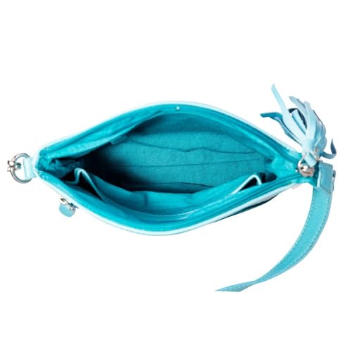 Fabric type: PU leatherClosure type: ZipperLining: LeatherBEAUTIFUL SHOULDER BAG - This attractive bag makes a fabulous impression! It features gorgeous hand-tooled leather in turquoise and chocolate brown, with a tasseled zipper-top closure.UPCYCLED FASHION BAG - The durable adjustable, removable shoulder strap is in matching leather. A uniquely wonderful bag!QUALITY CANVAS - Made from quality material, this exceptional bag follows a specific process in the creation of upcycled canvas purses. Carry it anywhere and ensures that both the functionality and style of each piece.SPECIALLY CREATED - Each item is carefully hand-crafted and has their own unique characteristic due to the various recycled yet durable materials used in creating these masterpieces. With the right dimensions of Item Width 9.5, Item Depth 2, Item Height 9, Shoulder 22.UNIQUE GIFT IDEA - Get this wonderful bag for the special woman in your life. Perfect gift for your bff, girlfriend, mom, wife, sister, daughter, grandma for Christmas, Valentine's Day, Mother's Day or Birthday.