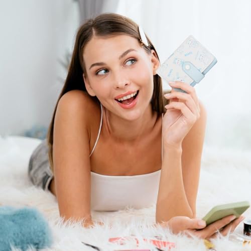 Trifold Wallets for Women, PU Cartoon Printed Multi Slot Cute Coin Purse With Buckle and Heart Shaped ID Window, Women’s Short Wallet for Travel and Dating (blue) 5