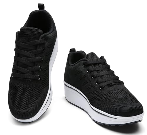 Fabric type: 100% SyntheticSole material: ManmadeOuter material: SyntheticClosure type: Lace-Up【Lightweight and Breathable Design】: The upper of walking shoes is made of highly elastic flying woven fabric, which is light and breathable. The densely woven net builds a three-dimensional upper surface that comfortably wraps the ankle. The soft fabric will expand and expand with the feet, maximizing the breathability and keeping the feet dry.【Stretchable Fabric Upper】: This walking shoes have durable knit upper with good stretch allows the foot to fit perfect, smooth fabric provide great freedom and comfortable. Super lightweight and flexible just like socks, smooth fabric make all your feet comfortable like wearing nothing.【Comfortable for All Day Standing】: The memory foam insole is comfortable to touch, absorbs the impact force in motion, reduces the burden on the body. It feels like you are walking on the clouds. Perforated arch for ventilation and breathability. traditional platform design makes these shoes are perfect work shoes for those who needs to stand or walk for long time.【Great Traction & Slip-resistant Sole】: Effectively reduce cushioning force and provide sufficient friction,let each step of your move all relaxed. Cushion design softens your steps, durable rubber outsole will keep you safe, stable and comfortable on any terrain. The work shoes for women are both attractive and functional.【Suitable for Various Occasions】: These platform sneakers for women are great for any daily occasions, such as walking, long time standing, work, food service, nursing, gardening, shopping, traveling, driving, jazz, tap dance, street jazz, leisure, athletic, workout, indoor and outdoor activities. Perfect for everyday use. excellent materials and excellent craftsmanship ensure long-lasting durability.