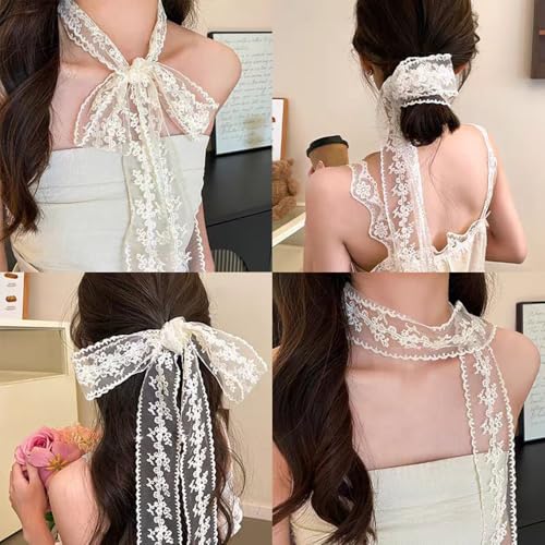 White Lace Ribbon Scarf Belt Fancy Long Lace Scarf Belts for Women Waist Belts for Jeans Floral Bow Waistband Tie Belt tender Mesh Fabric Waist Scarves Headscarf Women's Streetwear Accessories