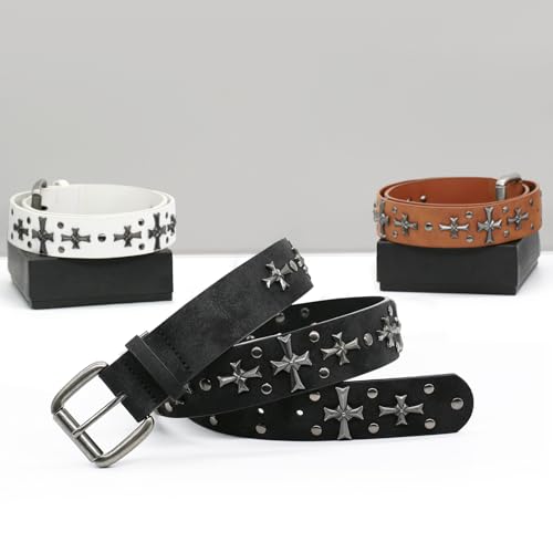 blu&ben Studded Belt for Women Y2K Metal Punk Rock Style Rivet Belts with Cross Rivet for Jeans Pants