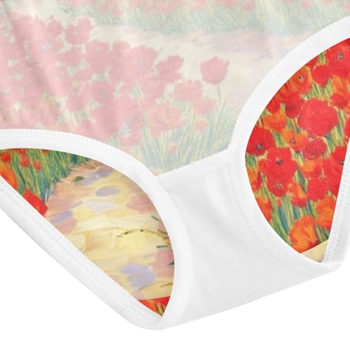 Vibrant Field Red Orange Flowers Girl Panties Cute Girls Underwear Toddlers Cotton Flower Underpants Briefs 2t