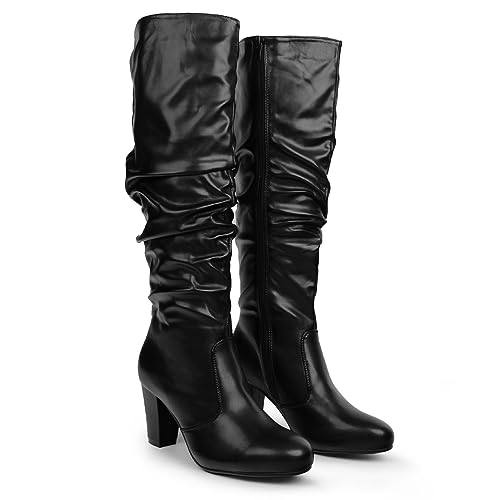 Sole material: Thermoplastic ElastomersShaft height: Knee HighShaft circumference: 39 CentimetersOuter material: Polyurethane (PU)Features: The knee length is very good to modify the curve of your legs, and the cute fold details are the finishing touch of this pair of boots, showing your style.Chunky Heel: Our chunky heel boots feature a traditional round toe to accentuate the slenderness of the foot, and the 3.15-inch block heel not only adds height to you but also brings a good walking experience.Suitable & Soft: Full length inner zipper closure, easy to put on and take off, and travel easily.The soft lining can adapt to a variety of leg shapes.Non-Slip&Wear-Resistant: Pattern of the sole can effectively prevent slippage. Supportive insole with thickness for cushioning and softness making it much more comfortable when walking.Outfit: Fashion Knee-High boots to match with various color systems, suitable for spring, autumn, summer, and winter, allowing you to keep up with the trend and belong to your fashion! Perfect for everyday use. top-grade materials and excellent craftsmanship ensure long-lasting durability.