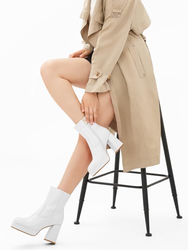 Oh Mispares Women's Platform High Chunky Heeled Ankle Boots Cozy Leather Gogo Boots Square Toe Side Zipper Booties