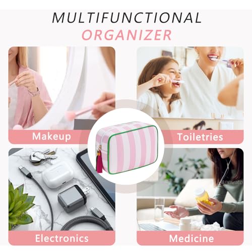 • [Fashionable Design]: This cute cosmetic bag features striped patterns, the tassel zipper fluently. plain and elegant design makes the makeup bag a fashionable accessory, suitable for both your everyday makeup routine and special occasions, allowing you to showcase your personal style.