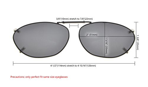 Origin: ImportedPRODUCTS DIMENSION-Frame material: Metal, Lens width: 2 (51mm), Frame width: 4 1/2(114mm) stretch to 4 15/16(126mm), Lens height: 1 5/16 (33mm), Frame height: 1 3/8 (35mm), Bridge (DBL): 3/8(10mm) stretch to 7/8(22mm)EYEKEPPER POLARIZED CLIP ON SUNGLASSES DESIGN: Eyekepper newest design creates a fashionable and powerful product; follows the latest style creating exceptional looks for mens and womens polarized clip on sunglasses, offers a timeless model that combines great fashion styling with quality, performance and comfort. Protect your eyes with highly durable wrap-around lens and contemporary frame.EYEKEPPER POLARIZED CLIP ON SUNGLASSES: Included a plastic case. UV 400 Protection Scratch Resistent Coated Lenses. Eyekepper newest design creates a fashionable and powerful product; follows the latest style creating unique looks for mens and womens polarized clip on sunglasses, offers a timeless model that combines great fashion styling with quality, performance and comfort. Protect your eyes with highly durable wrap-around lens and stylish frame.QUALITY CLIP ON SUNGLASSES-Registered Sunglasses and EyewearPerfect gift for your friends, parents, grandparents and relatives