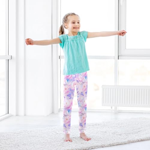 Peonies Lilac Watercolor Ongrey Pink Kids Girl's Active Leggings Stretch Full Length Athleisure Pants Gym 6