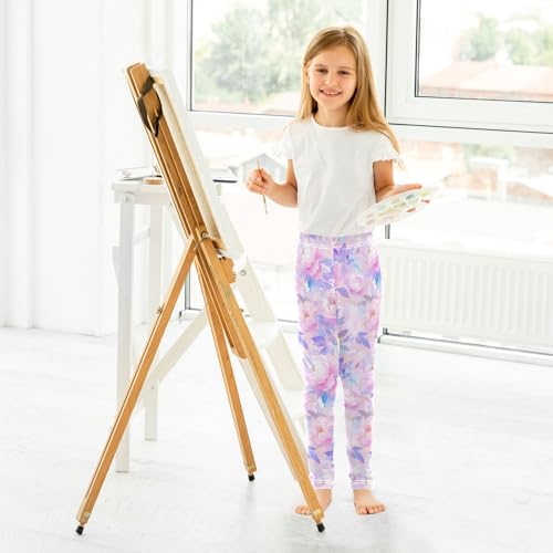 More information about Peonies Lilac Watercolor Ongrey Pink Kids Girl's Active Leggings Stretch Full Length Athleisure Pants Gym