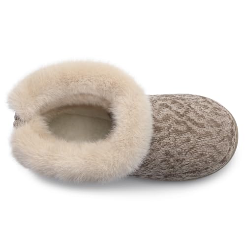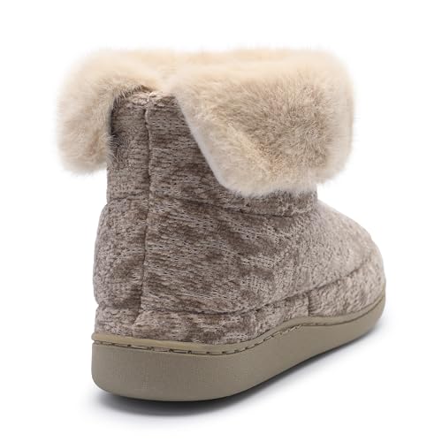 Bigwow Women's Bootie Slippers Fuzzy Lined Knit Ankle Boots Cozy House Slipper Non-Slip heated Indoor Outdoor Booties Shoes with Plush Collar